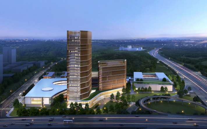 规划愿景是创造一个当代、创新、以人为本的建筑和城市空间。结合现有城市界面和周边状况,采用方的设计原形来代表政府学校,方庭和中央景观连接,形成空间轴线。老年大学则围绕着一个直径50米的圆形院落展开。南北向的中央大道,既分隔功能,又在不同的标高上将各部分使用功能联络。建筑外墙采用金属色的遮阳系统、既生态节能,又彰显园区品质。