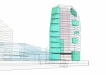 这是一个国家高新区创新创业园区的中心建筑。建筑群体包括3万平方米的办公楼,300床的四星级宾馆,会展中心及交易大厅。设计受煤化工业和当地地理特征起发,力图创造一个代表山西新世纪新形象的地标建筑。设计概念上,把煤的“自然形成,人工利用”(自然地理的层积到人力的开采和雕琢)所反映的人与自然的关系通过建筑与大地的关系表现出来,通过对大地景观的再创造,对煤的形成和演化进行暗示,让建筑成为体现这种沉积演化的载体。广场作为了整个园区的中心,四大功能组成部分——办公、酒店、会展中心和交易大厅分布在广场周围,相互对话。体量分散的处理也解决了使北部广场阴影减少的问题,在城市设计的层面上,北部广场和下沉的庭院/地下餐厅,与中心广场一道,共同构筑出了一个立体的供高新区员工活动的市民广场。